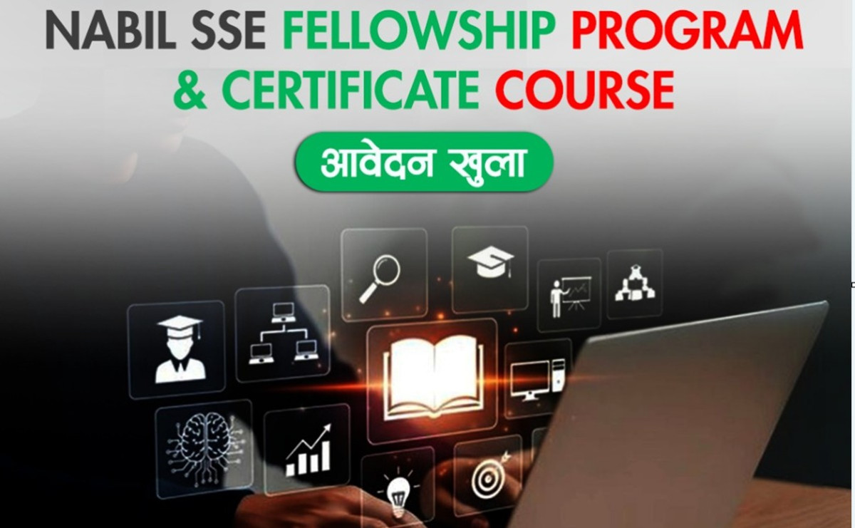 काठमाडौं । नबिल बैंक लिमिटेडले नबिल स्कूल अफ सोशल इन्टरप्रेनरसिप (नबिल एसएसई) अन्तर्गत फेलोसिप र सर्टिफिकेट कोर्सको नयाँ समूहका लागि आवेदन आह्वान गरेको छ । सामाजिक उद्यमशीलताको प्रवद्र्धन गर्ने लक्ष्यका साथ सुरु गरेको यस कार्यक्रममा उद्यमशीलतामार्फत समाजमा सकारात्मक योगदान पु¥याउने सोच भएका व्यक्तिहरु सहभागी हुन सक्नेछन् । १८ वर्ष उमेर पूरा भएका इच्छुक नेपाली नागरिकहरुले…