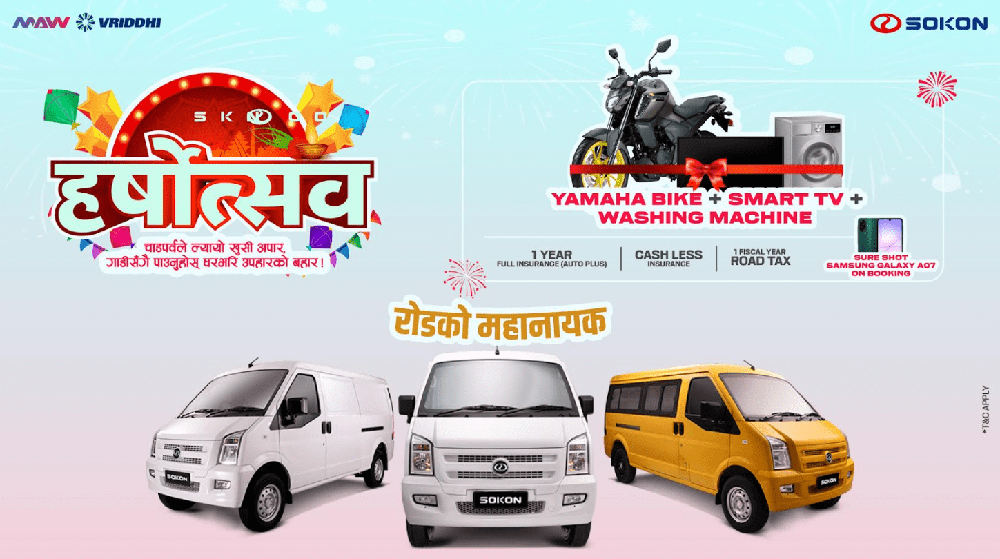 काठमाडौँ । यो दशैंमा सोकोन नेपालले ईभी भ्यान खरिद गर्नेहरूका लागि विशेष अफर ल्याएको छ । ग्राहकहरूले नयाँ ईभी भ्यान खरिद गर्दा उपहार, फाइनान्सको सजिलो सुविधा र निश्चिन्तताको अनुभव प्राप्त गर्न सक्ने भएका हुन् । अफर अन्तर्गत खरिदकर्ताले यामाहा बाइक, टेलिभिजन र वासिङ मेसिन जस्ता उपहार पाउनेछन् । यी उपहारहरूले दशैं–तिहारलाई अझ रमाइलो बनाउनुका साथै…
