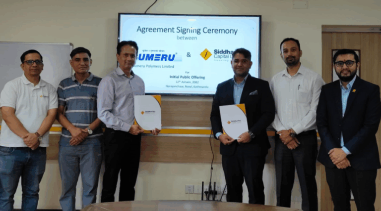 यस सम्बन्धमा कम्पनी र क्यापिटलबीच नक्सालस्थित क्यापिटलको कार्यालयमा आश्विन १२ गते सम्झौता भएको हो । सम्झौतापत्रमा सुमेरु पोलिमर्स लिमिटेडका प्रबन्ध सञ्चालक दिवस घिमिरे र सिद्धार्थ क्यापिटल लिमिटेडका प्रमुख कार्यकारी अधिकृत सन्दिप कार्कीले हस्ताक्षर गरेका हुन् ।