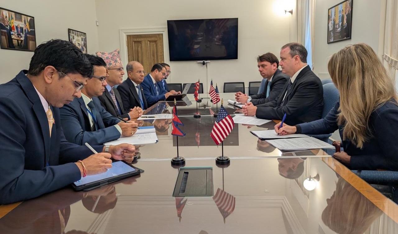 काठमाडौं । विश्व बैंक र अन्तरराष्ट्रिय मुद्रा कोषको वार्षिक बैठकमा भाग लिने क्रममा संयुक्त राज्य अमेरिकाको वासिङटन डीसीमा रहेका अर्थमन्त्री रामेश्वर प्रसाद खनालले आज संयुक्त राज्य अमेरिकाको वाणिज्य प्रतिनिधिसँग छलफल गरेका छन् । सो क्रममा नेपाल र संयुक्त राज्य अमेरिका बीचको आपसी व्यापार र लगानी प्रबद्र्धनका विषयमा छलफल भएको अर्थ मन्त्रालयले जनाएको छ ।