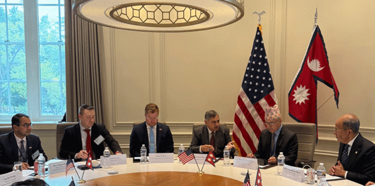 काठमाडौँ । विश्व बैंक तथा अन्तर्राष्ट्रिय मुद्रा कोषको वार्षिक बैठकमा भाग लिन अमेरिका गएका अर्थमन्त्री रामेश्वरप्रसाद खनालले अमेरिका चेम्बर अफ कमर्सले आयोजना गरेको बिजनेस डायलगलाई सम्बोधन गरेका छन् ।